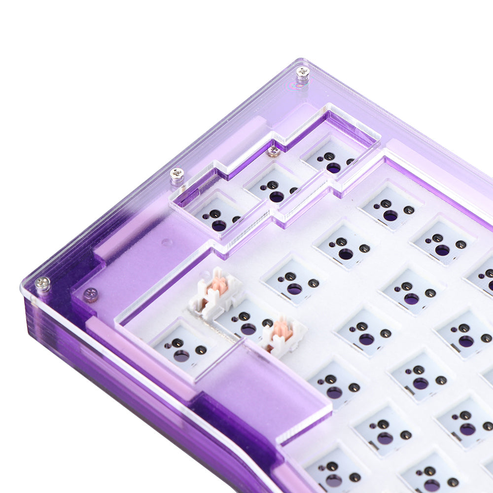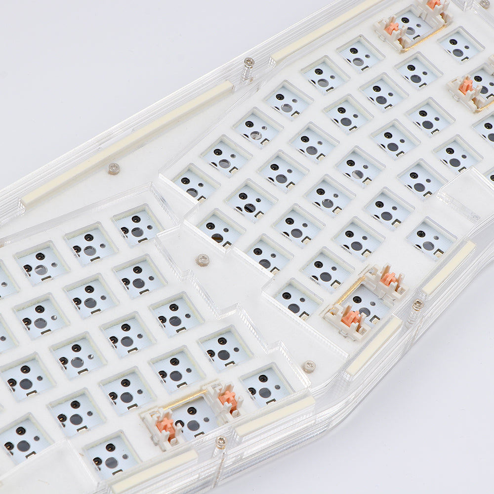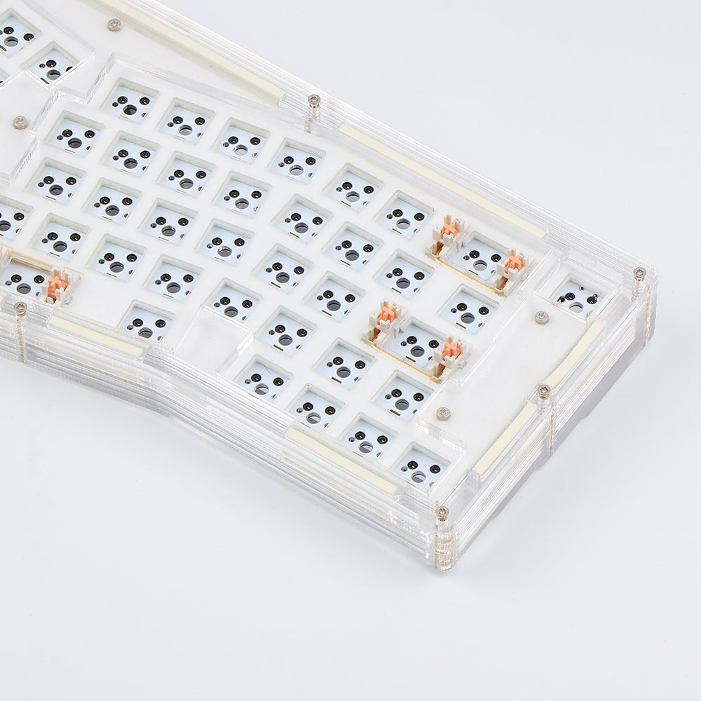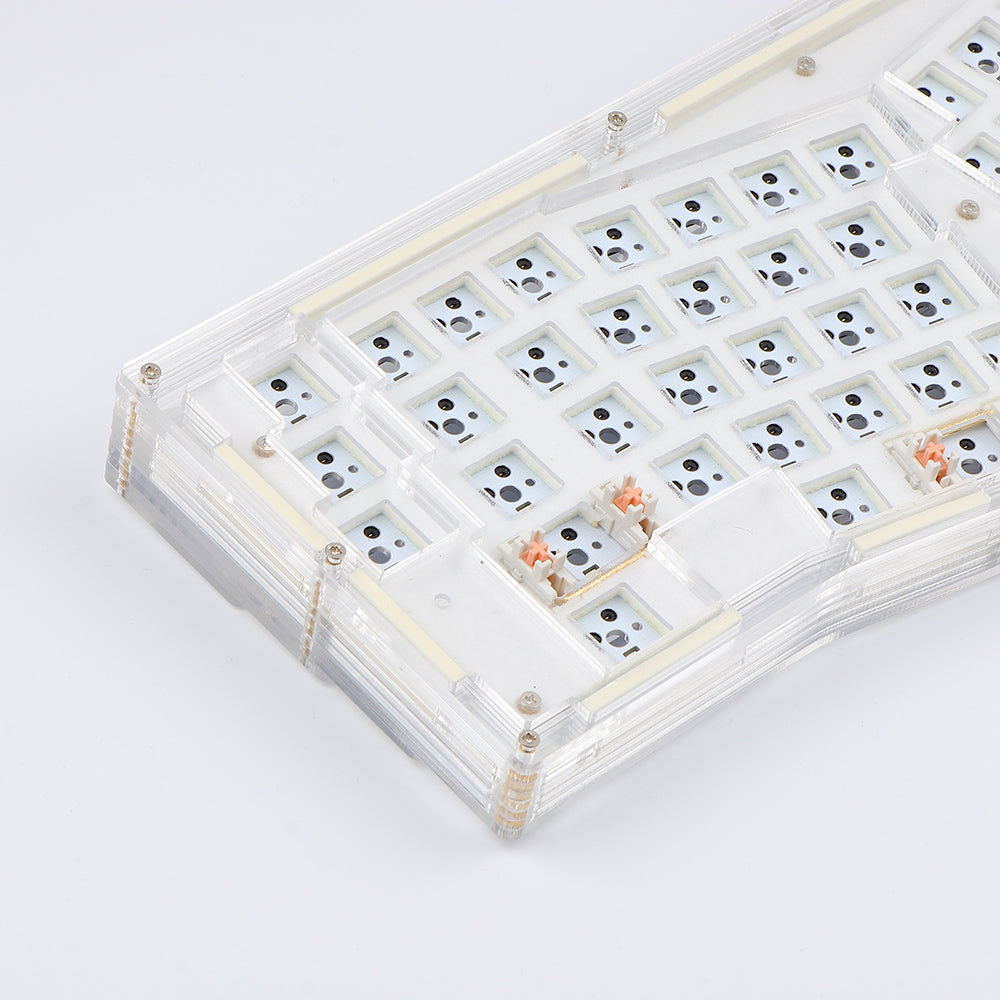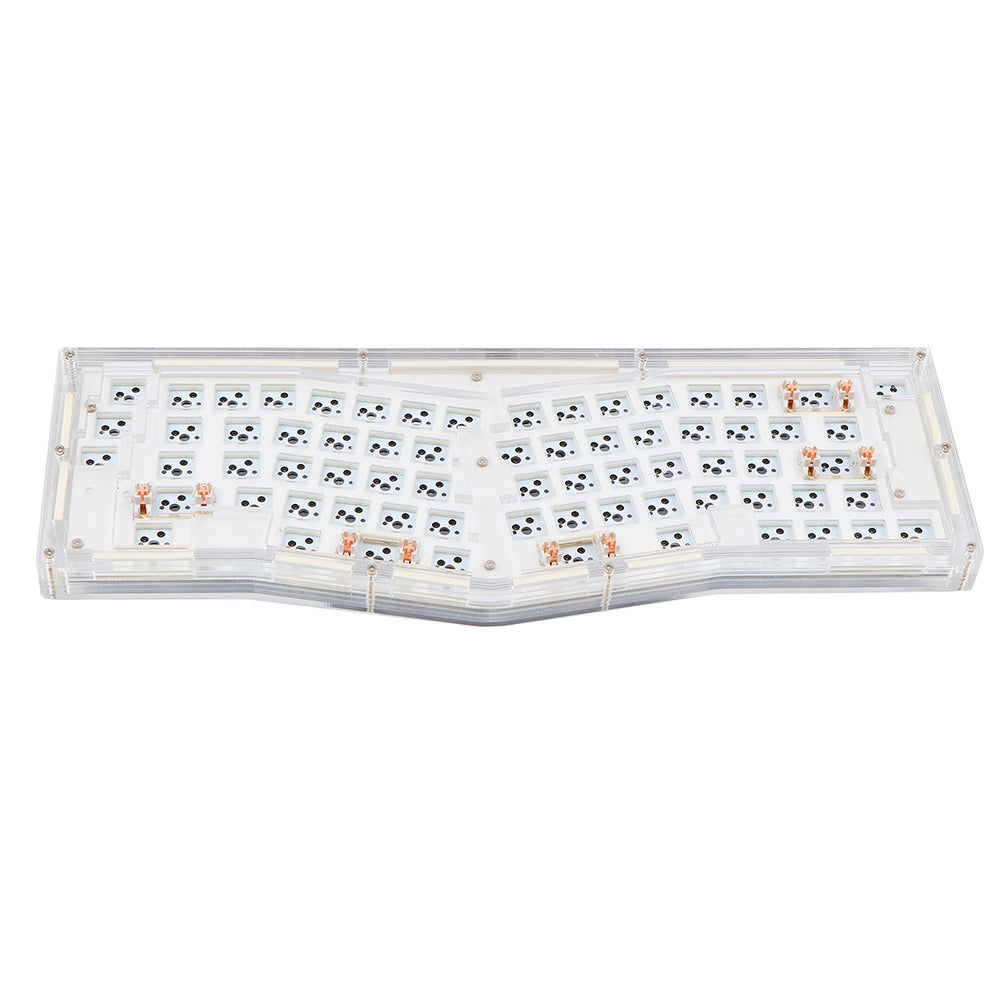 Acrylic-based keyboards are cool to typists as they can be much brighter with backlights. Epomaker Alice DIY kit applies full acrylic pieces stacked to a complete case and installs LEDs and RGB modules on the PCB. The backlight can shine not only through the sockets but also from the sides of the keyboard, creating a visible environment even under dark conditions.