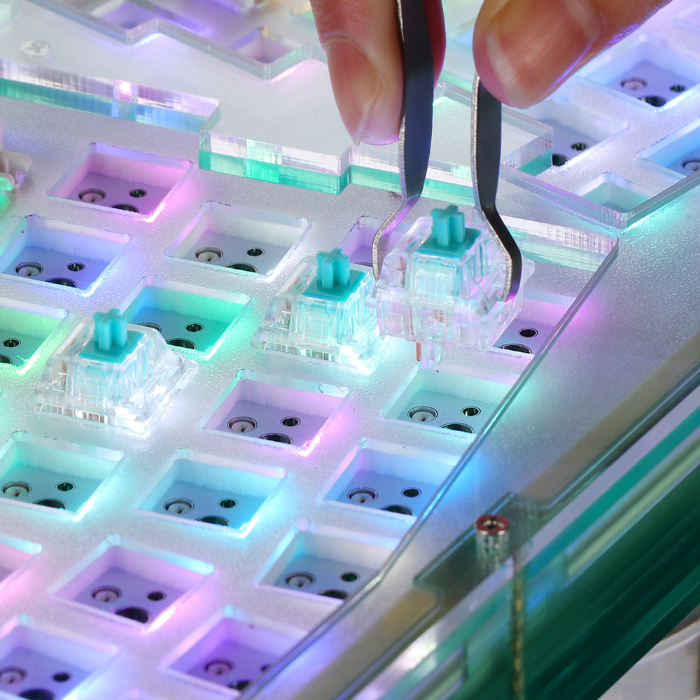 Gasket mount keyboards are well-known for giving a cushioned typing feel, as the plate is not in direct contact with the case housings. Compared with other mounting systems, a gasket-mounted keyboard, especially with a PC plate, can provide a rebouncing typing experience because the gaskets cushion the shock from each keystroke. As to the sound, we go with the sound absorption cotton in between the plate and the PCB board, so the keyboard sounds and feels soft.